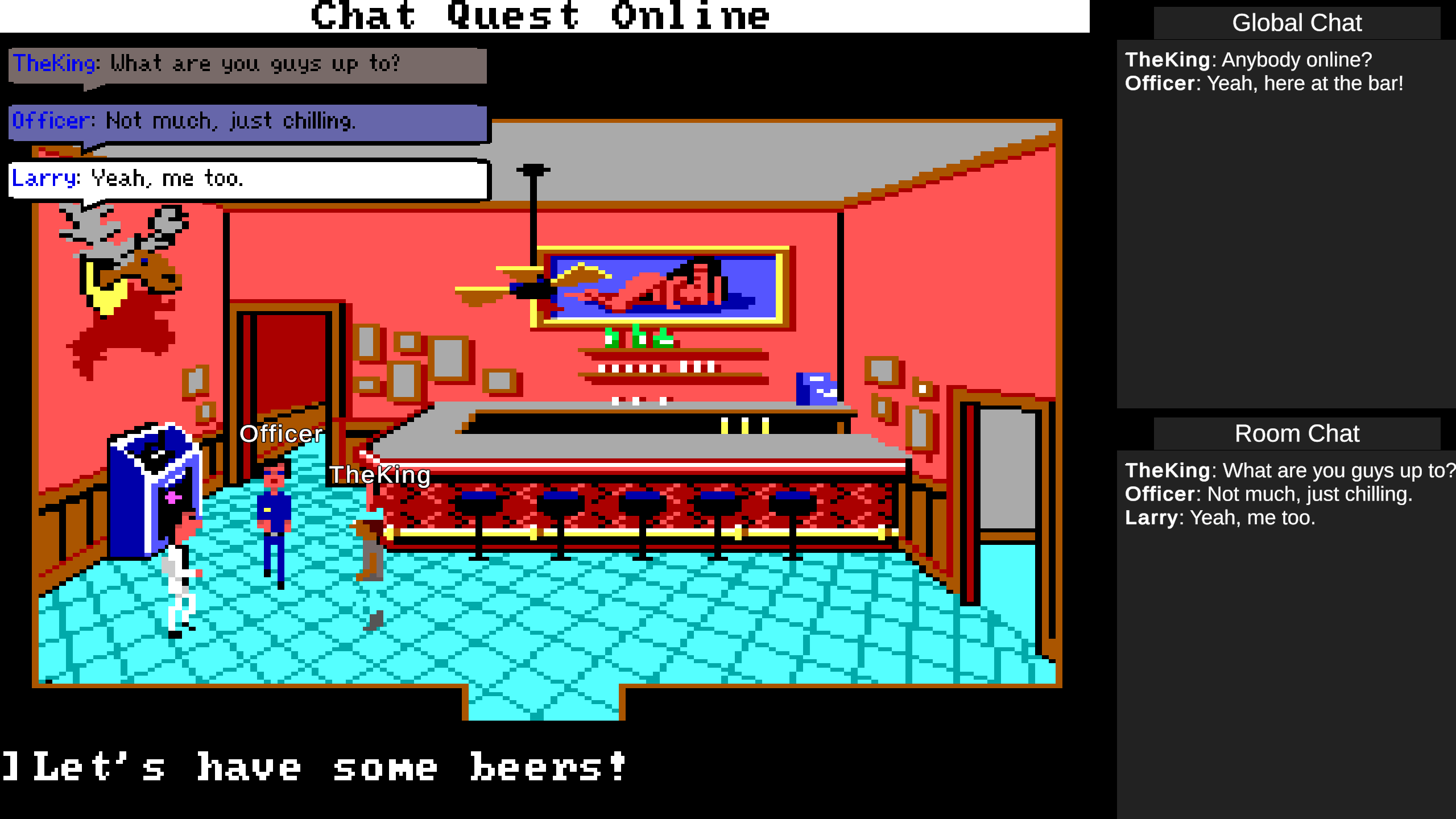 Meet with your friends online and chat in the fantastic world of Sierra's AGI games. Become Larry, Sonny, Roger Wilco or Sir Graham and explore Lefty's Bar and the Lytton Police Department.
